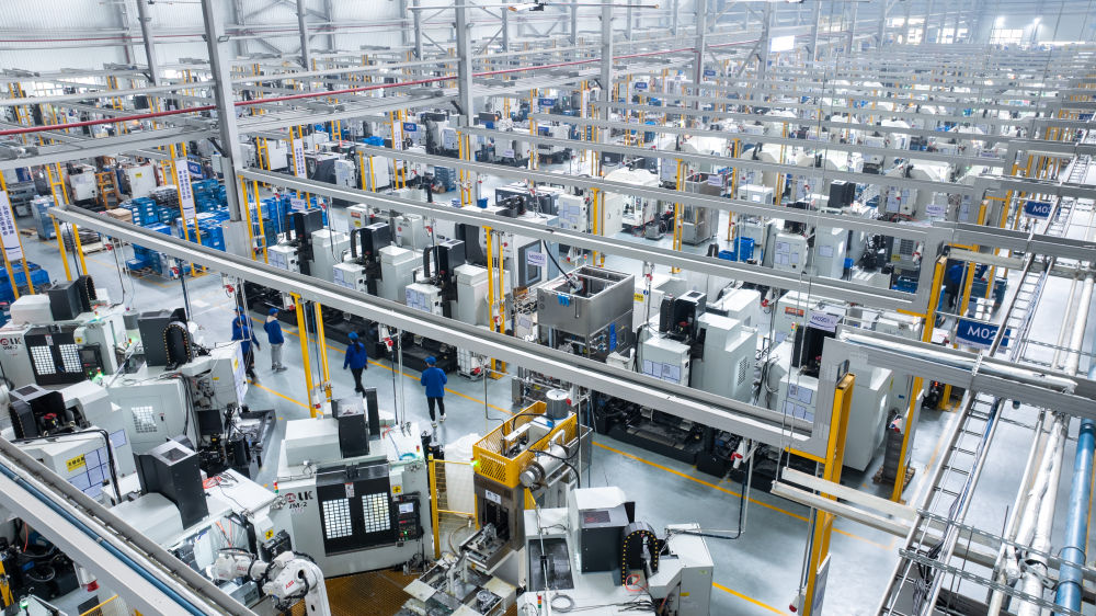 在位于湖南浏阳经开区的长沙博大科工股份有限公司,工作人员在制造汽车零部件(2024年4月9日摄,无人机照片)。新华社记者 陈思汗 摄