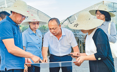 2022年7月,徐利民(右三)和相关专家实地察看上山遗址博物馆选址区块。张国萍 摄
