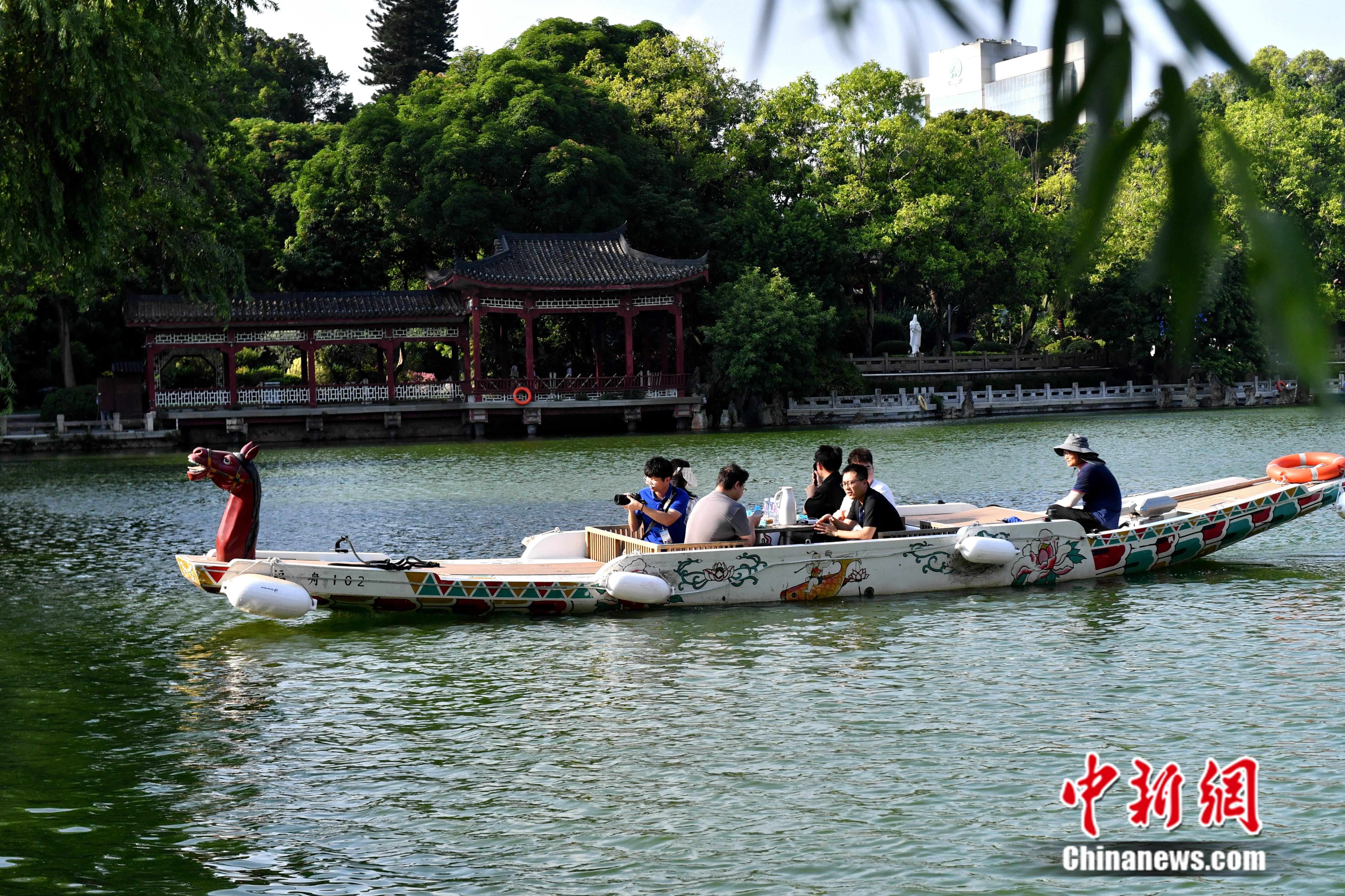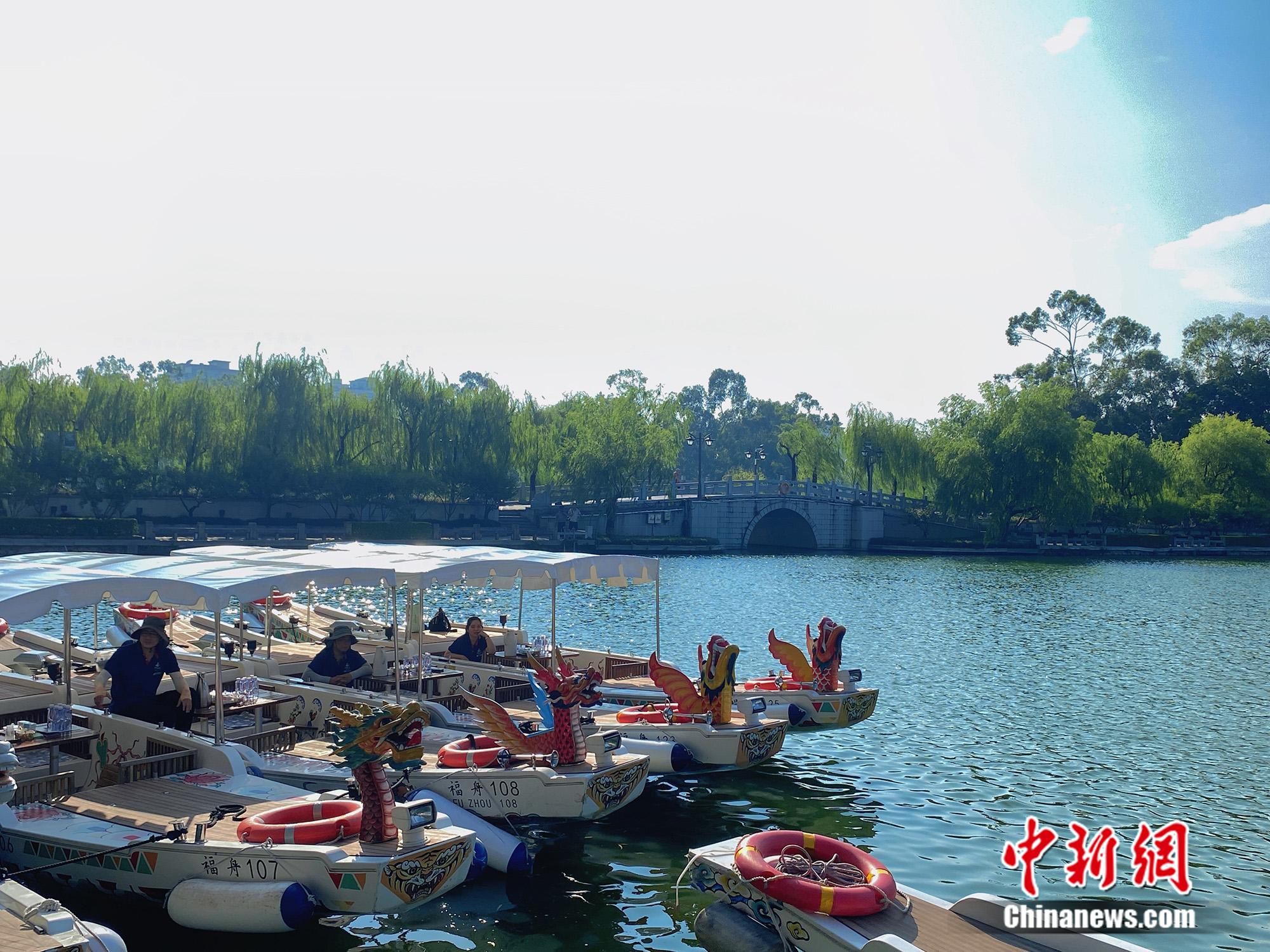 福州西湖岸边的特色龙舟游船。苏亦瑜 摄