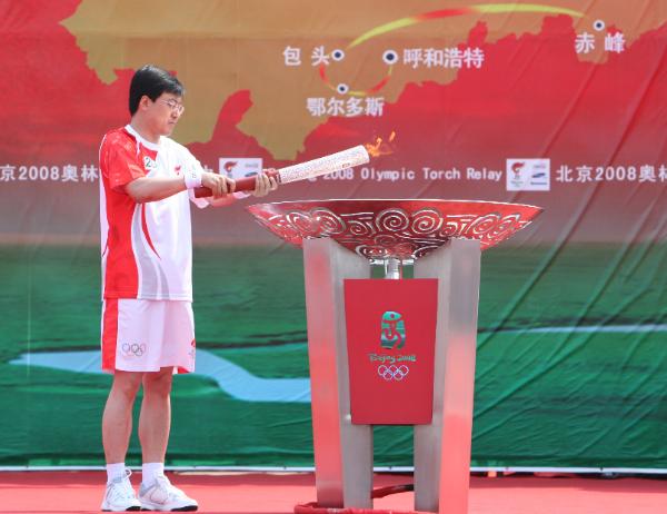 伊利集团董事长兼总裁潘刚点燃2008年奥运会圣火