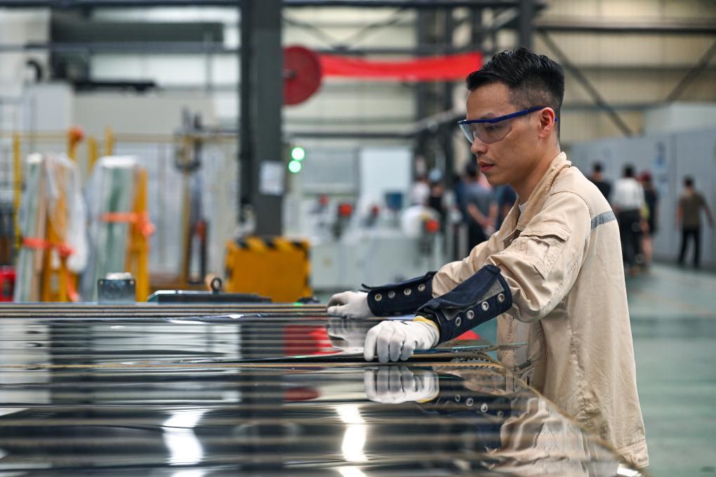 7月27日,湖南旗滨电子玻璃股份有限公司工作人员在生产线上检查产品品质。新华社记者 李鑫 摄