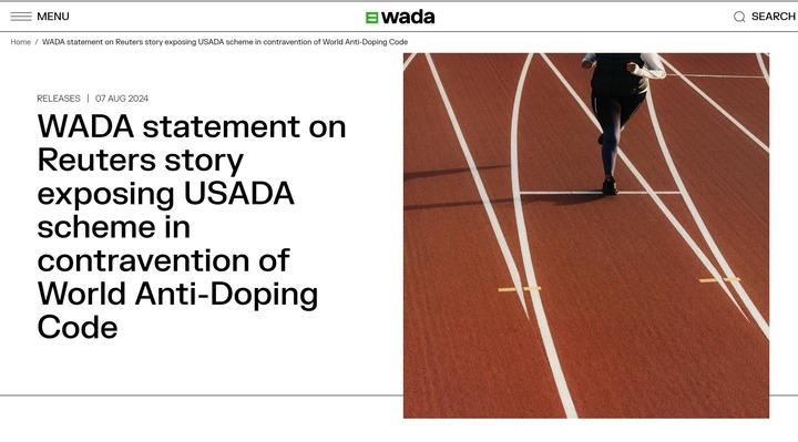 WADA官网发布关于美国反兴奋剂机构掩盖纵容兴奋剂违规事件的声明。