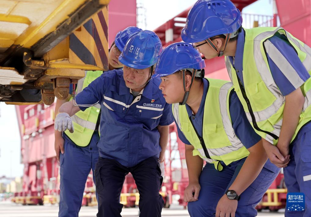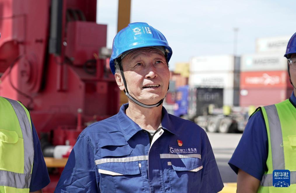 许振超在山东港口青岛港集装箱码头调研(9月2日摄)。新华社发(闫军摄)