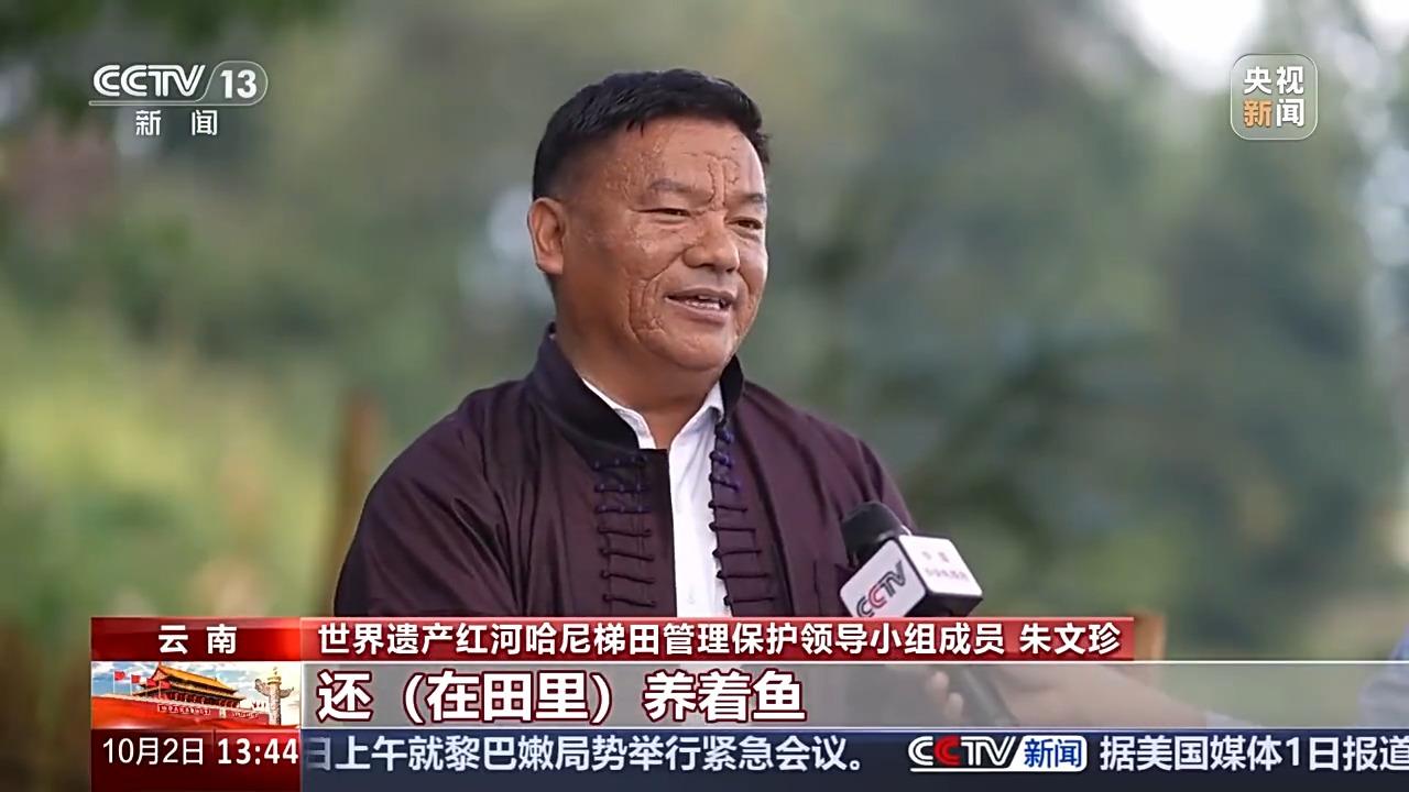 世界遗产红河哈尼梯田管理保护领导小组成员 朱文珍:我们还在田里养着鱼,还养着鸭子,“稻鱼鸭”成了我们哈尼梯田遗产区老百姓增收致富的产业。我们的老祖宗留给我们的这片宝贵的遗产我们要代代相传,这是我们边疆各民族守护好自己的精神家园的一个重要体现。
