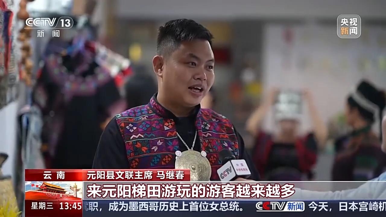 元阳县文联主席 马继春:这几年来,来元阳梯田游玩的游客越来越多。为了让游客增加体验感,我们结合了传统的哈尼梯田文化元素,做了很多大胆的努力和创新。比如说做了很多文创,比如包包、乐器和服饰之类的,他们的满意感特别强,我觉得这也是我们守护哈尼梯田的另外一种形式。
