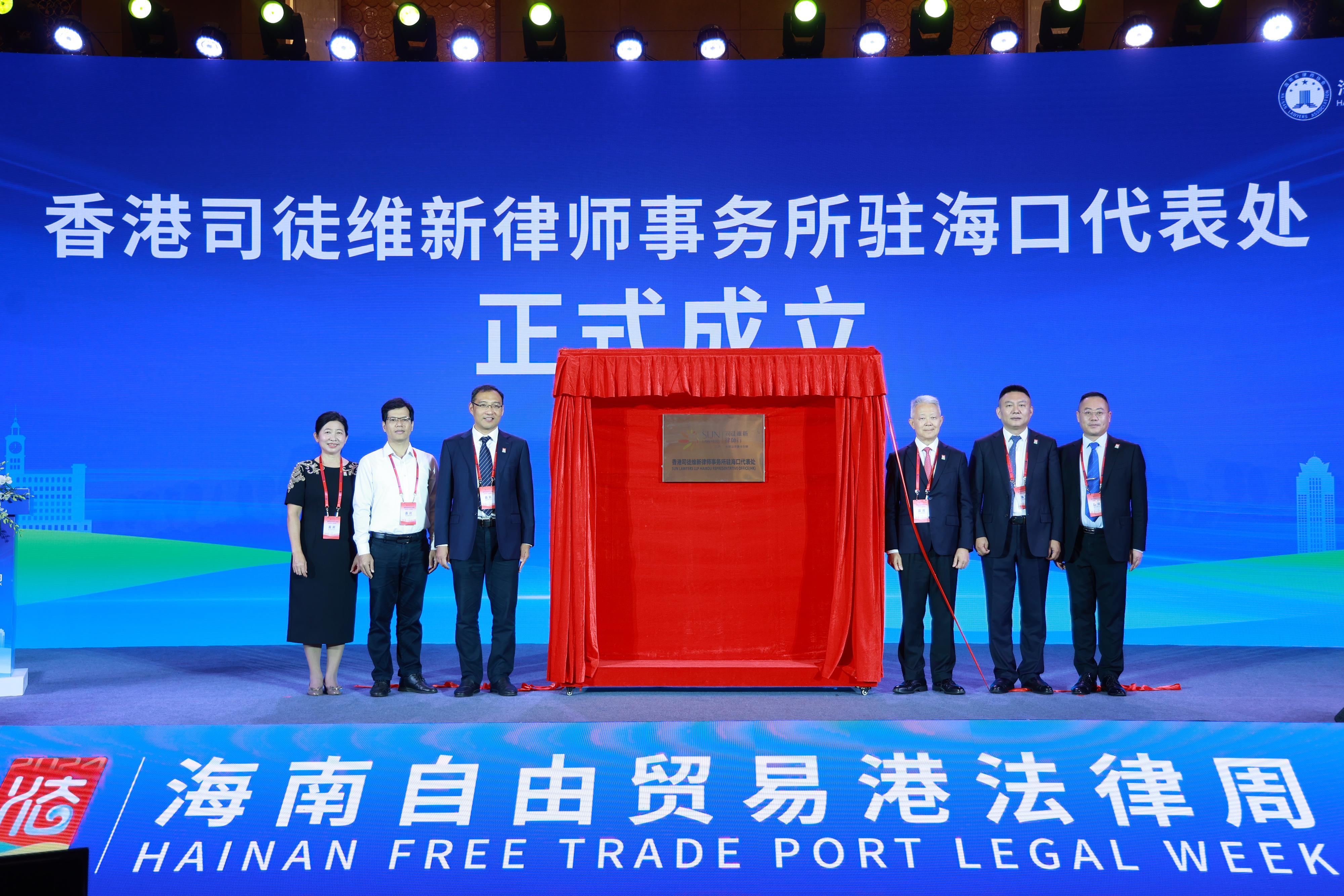 10月17日上午,2024海南自由贸易港法律周开幕式后,香港司徒维新律师事务所驻海口代表处在海口揭牌成立。