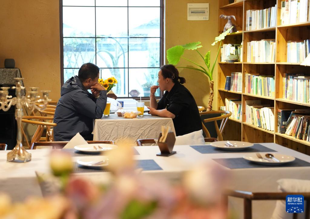 12月3日,游客在浙江省舟山市普陀区黄杨尖村一家餐厅休息。