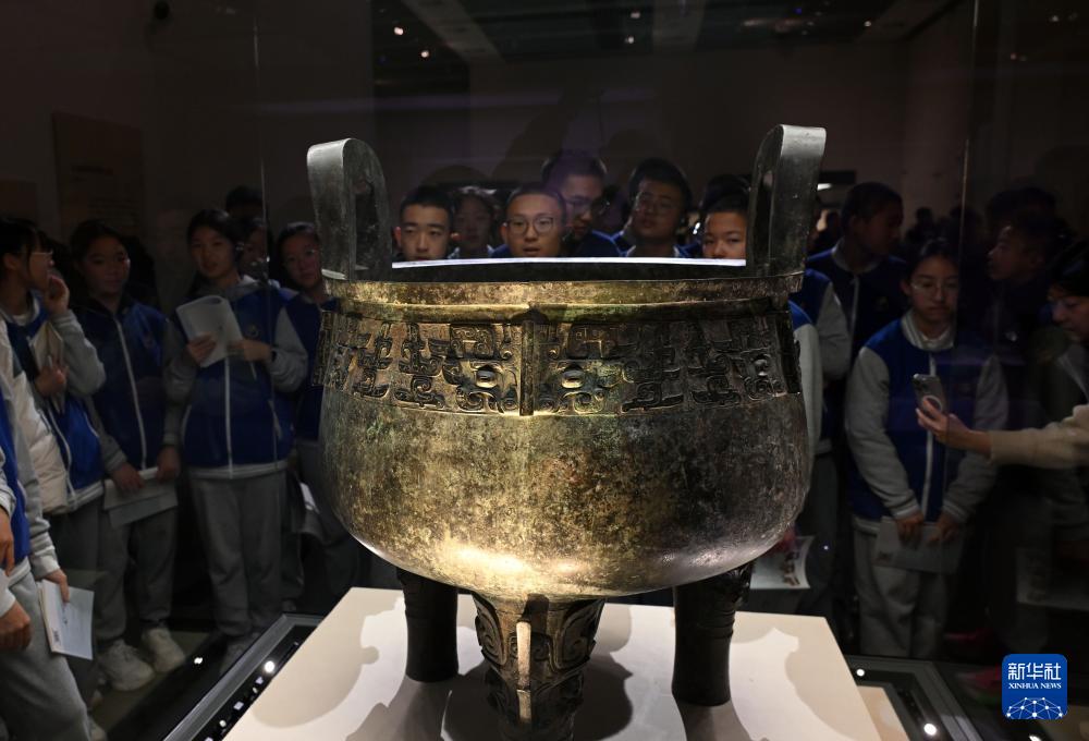 12月3日,观众在中国国家博物馆“古代中国”基本陈列参观展出的西周“盂”青铜鼎。