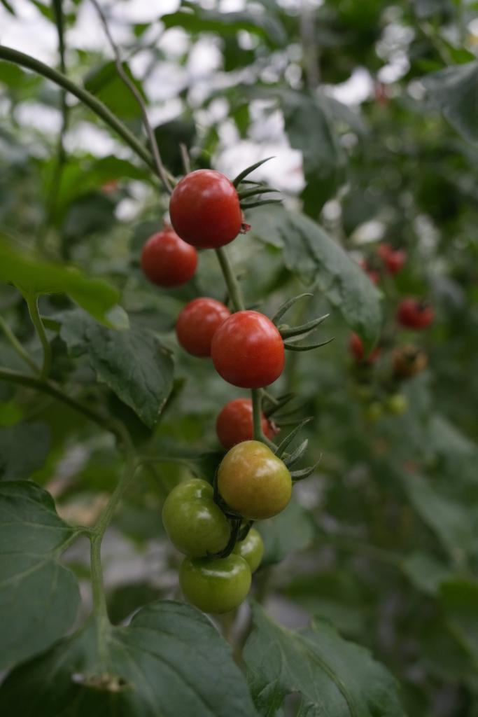 湾底村智能化玻璃温室里的七彩番茄可供游客体验采摘。新华社记者周佳谊 摄