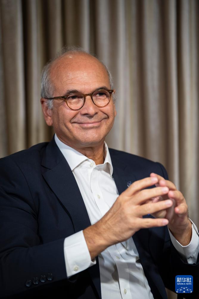 2023年7月5日拍摄的澳门大西洋银行行政总裁、葡萄牙人卡洛斯·阿尔瓦雷斯(中文名区伟时)。新华社发(张金加 摄)