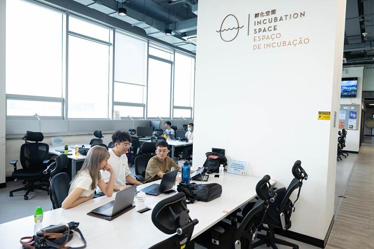 澳门青年创业孵化中心里,青年创业者聚在一起商讨业务,忙得不亦乐乎,一旁的展柜摆满了各种创新产品。加速器区、路演区、会议室……中心丰富有序的空间设置,为创客们搭建起成就梦想的舞台。