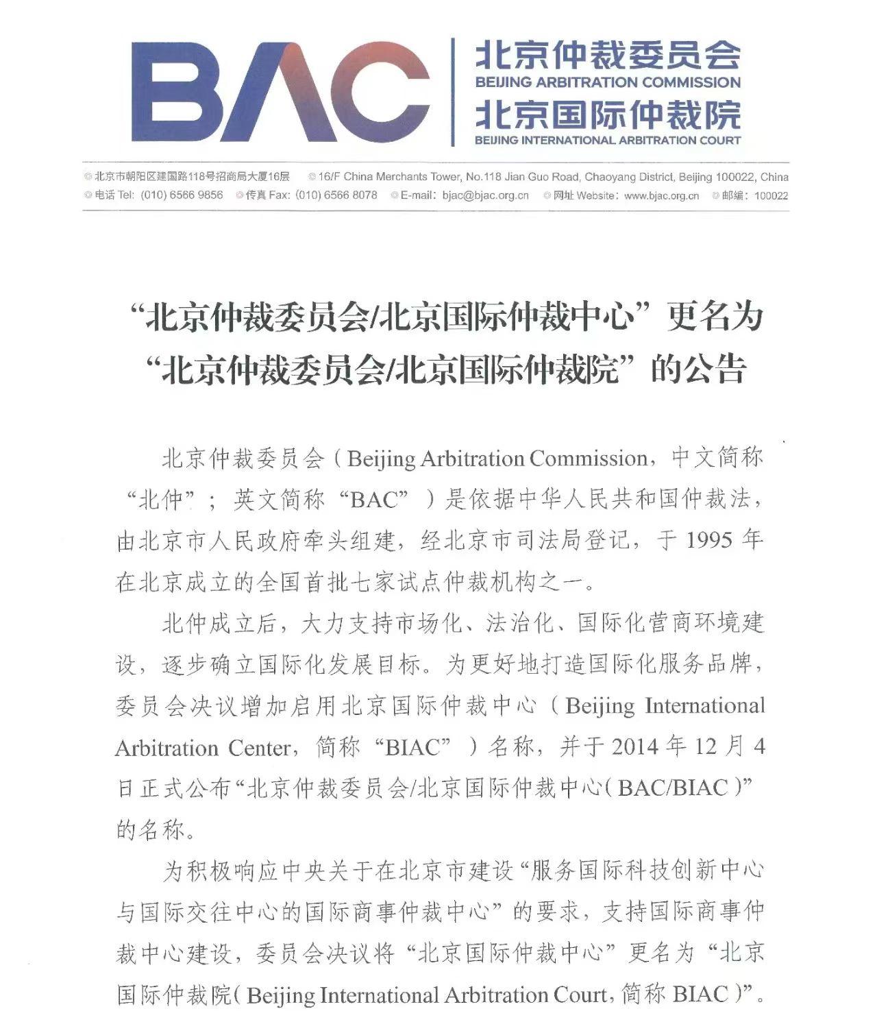 12月10日,记者从“建设国际一流仲裁机构 助力国际商事仲裁中心建设”新闻发布会上获悉,为积极响应中央关于在北京市打造“服务国际科技创新中心与国际交往中心建设的国际商事仲裁中心”的要求,支持国际商事仲裁中心建设,经北京市司法局依法变更登记,12月4日“北京仲裁委员会/北京国际仲裁中心”的名称变更为“北京仲裁委员会/北京国际仲裁院”(以下简称北仲)。