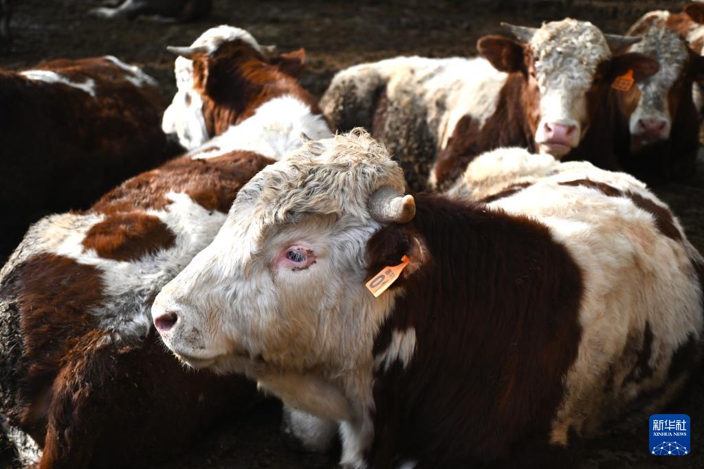 这是1月6日在宁夏固原市泾源县一家养牛场拍摄的黄牛。
