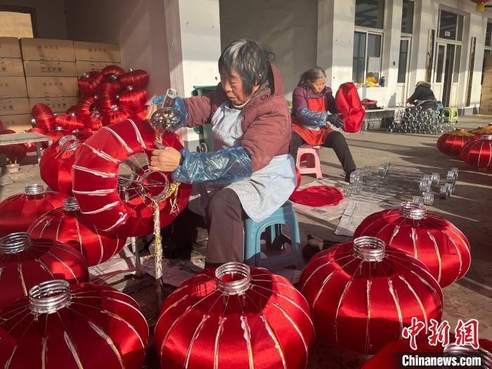 中新网长治1月14日电 (杨静 陈雨彤 陈尧)新春将至,年味渐浓。山西省长治市长子县慈林镇龙泉村的丹恒灯笼厂内一片繁忙,工人们开足马力赶制各式花灯,为即将到来的蛇年春节增添喜庆氛围。