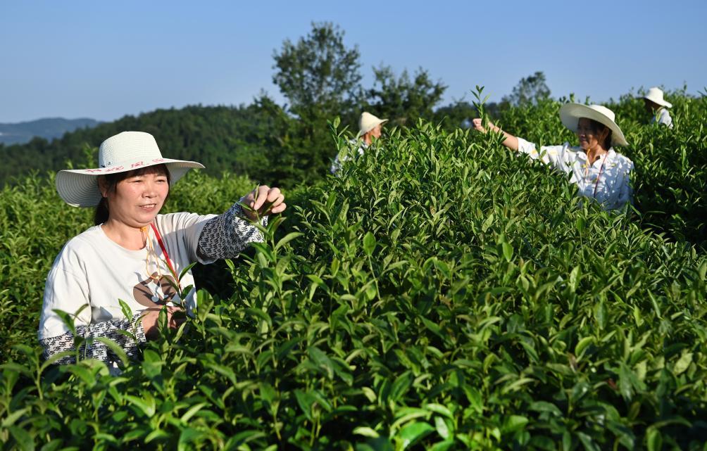 蒋家坪村民在采摘茶叶。(平利县委宣传部供图)