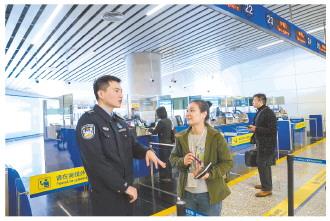 “又来啦,‘老马’!这次,根据新政策申请了240小时过境免签呀。”1月21日上午10时许,在广东广州白云国际机场临时入境许可办理窗口,广州出入境边防检查总站白云边检站移民管理警察史顺栋笑着和旅客打着招呼。