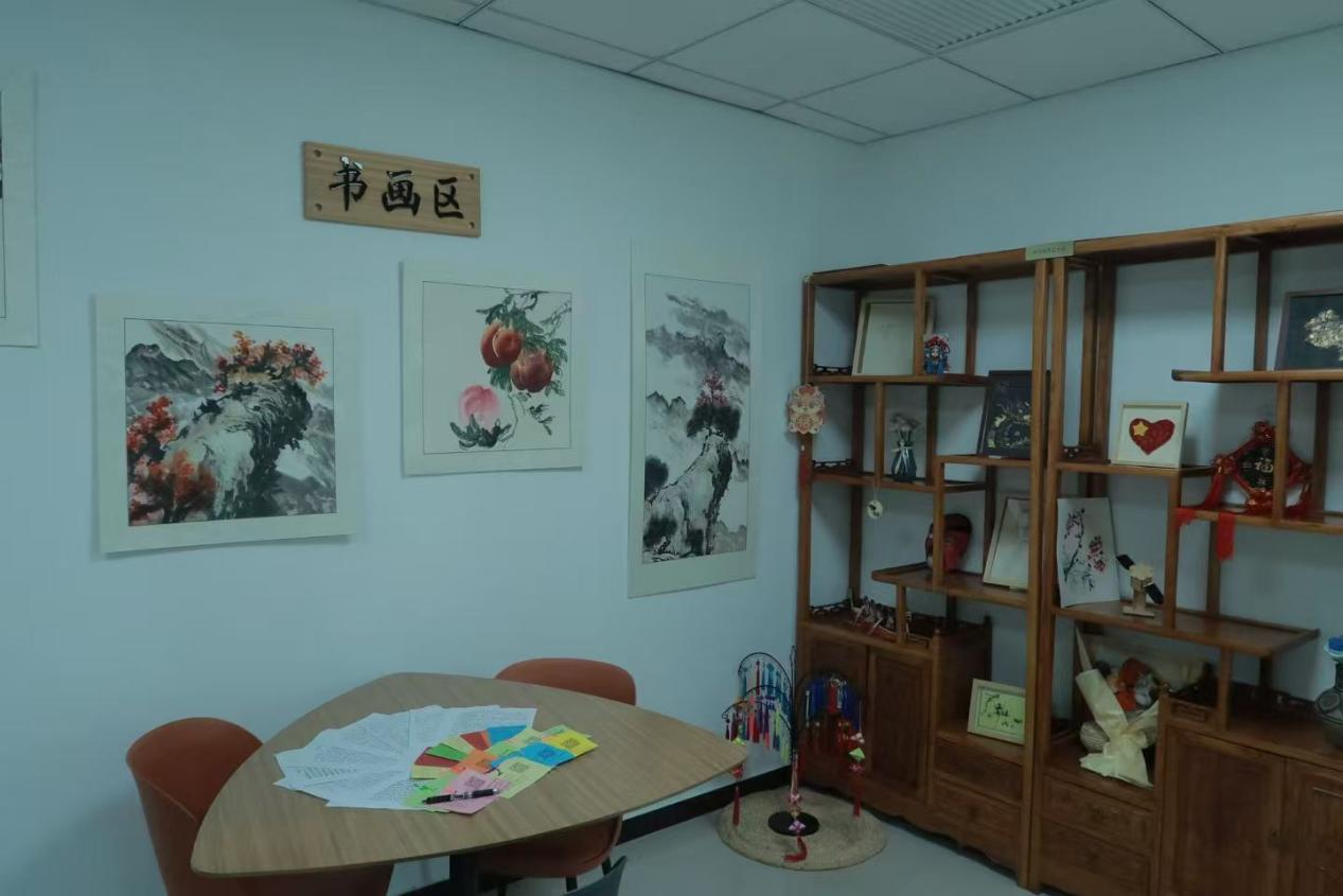 穿过矫正中心的走廊,有一间技能培训室,里面摆满了社区矫正对象学习制作的各类手工、绘画、摄影作品,这里是为矫正人员提供知识技能培训的场所。
