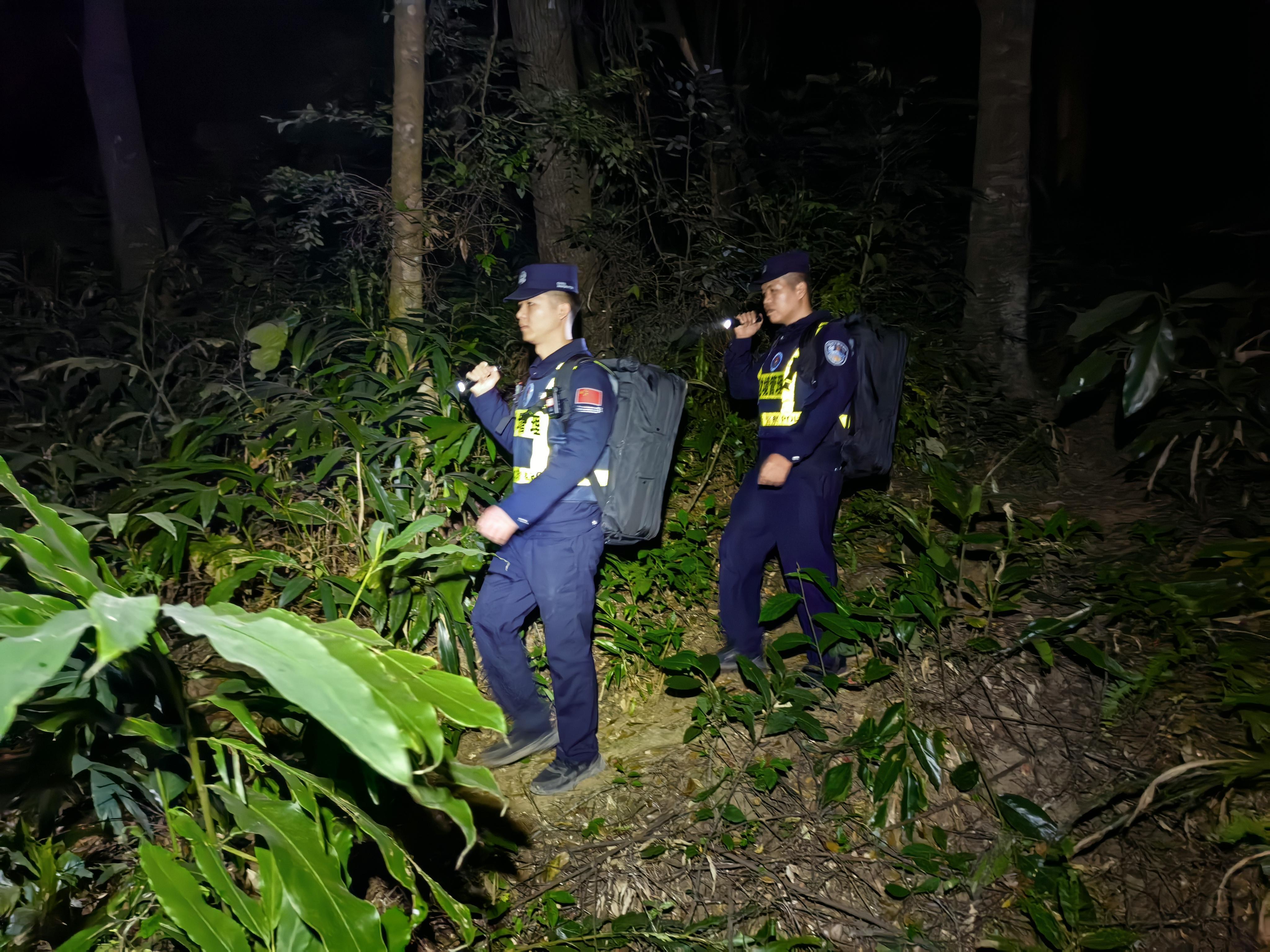 去年12月11日深夜,大青山警务室获悉一条重要工作信息,一伙偷渡分子企图从大青山附近偷渡出境。傅彬和同事莫璧成立即在重要路段设卡拦截,虽然发现目标车辆但车内并无其他人员。民警根据工作经验判断,该车可能已让可疑人员下车离开。随即,莫璧成立即联系护边员、网格员等群众力量对附近区域进行搜索。
