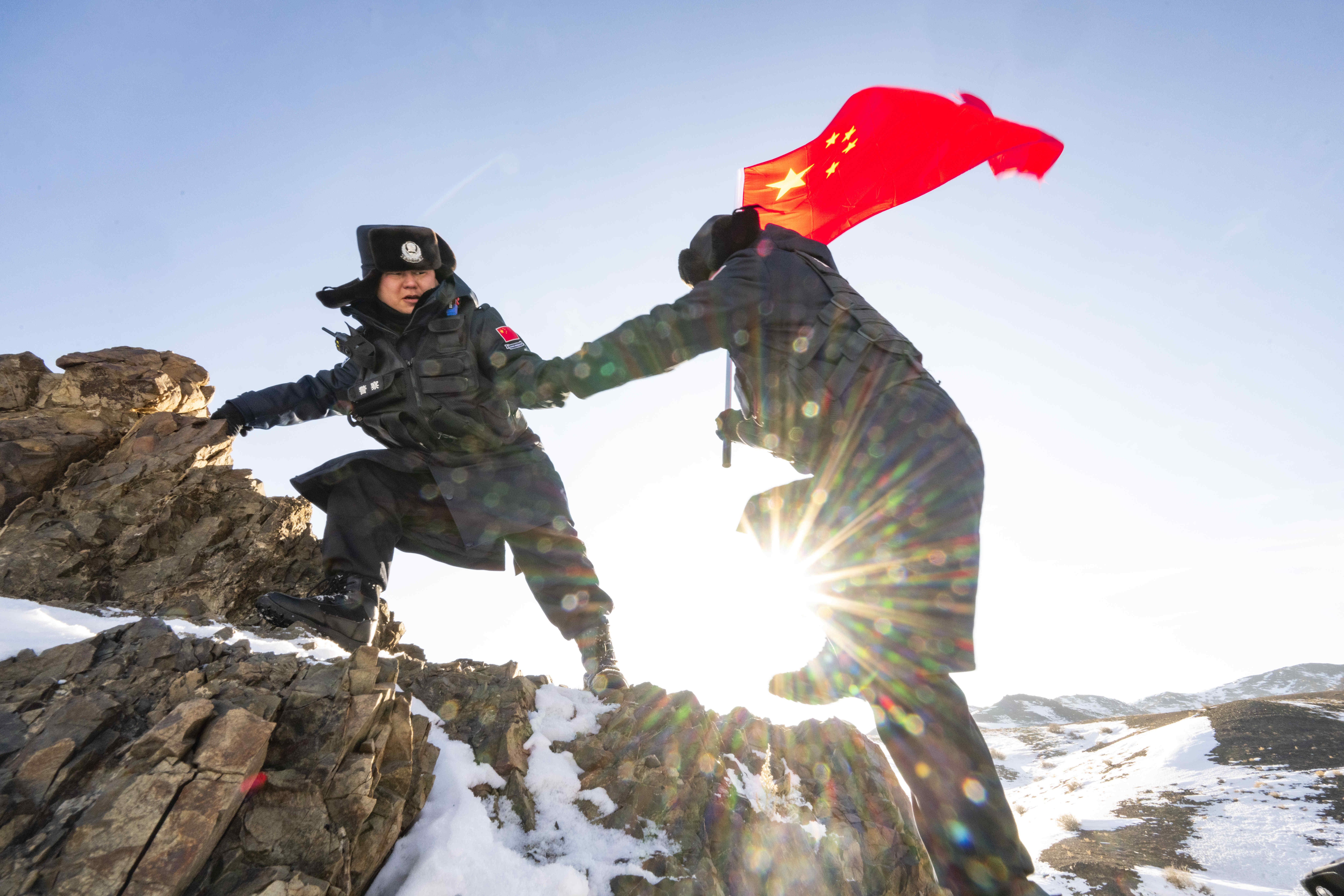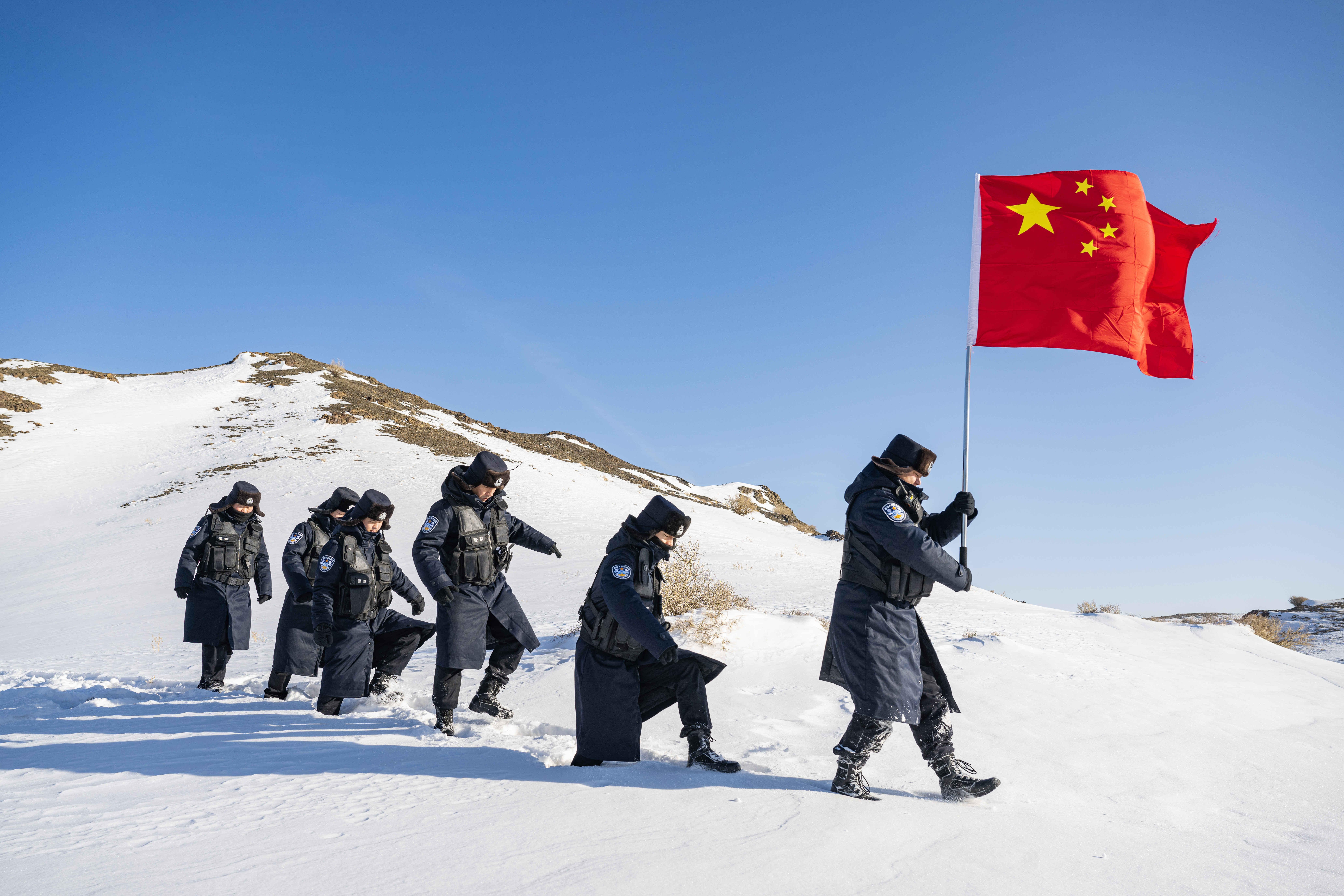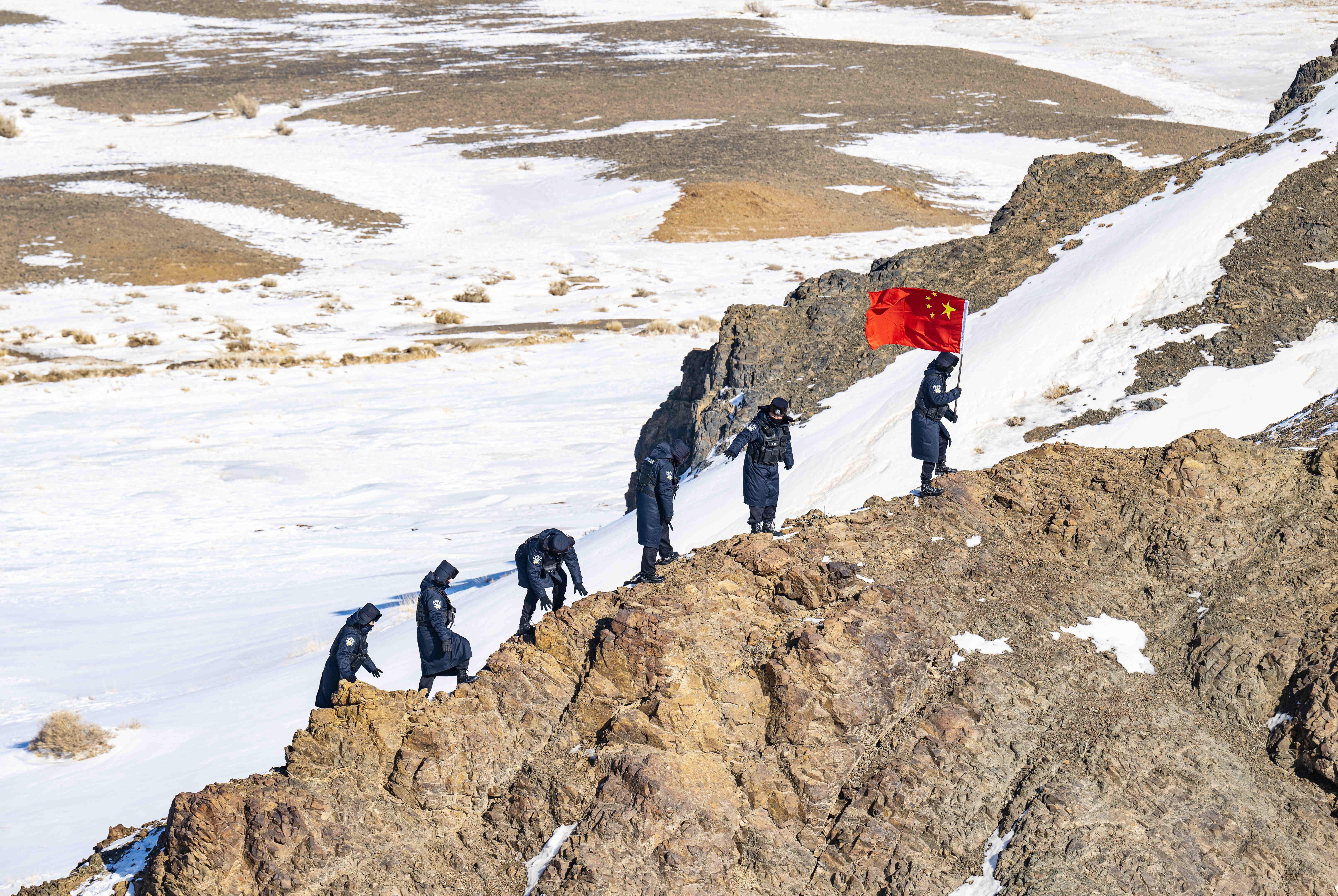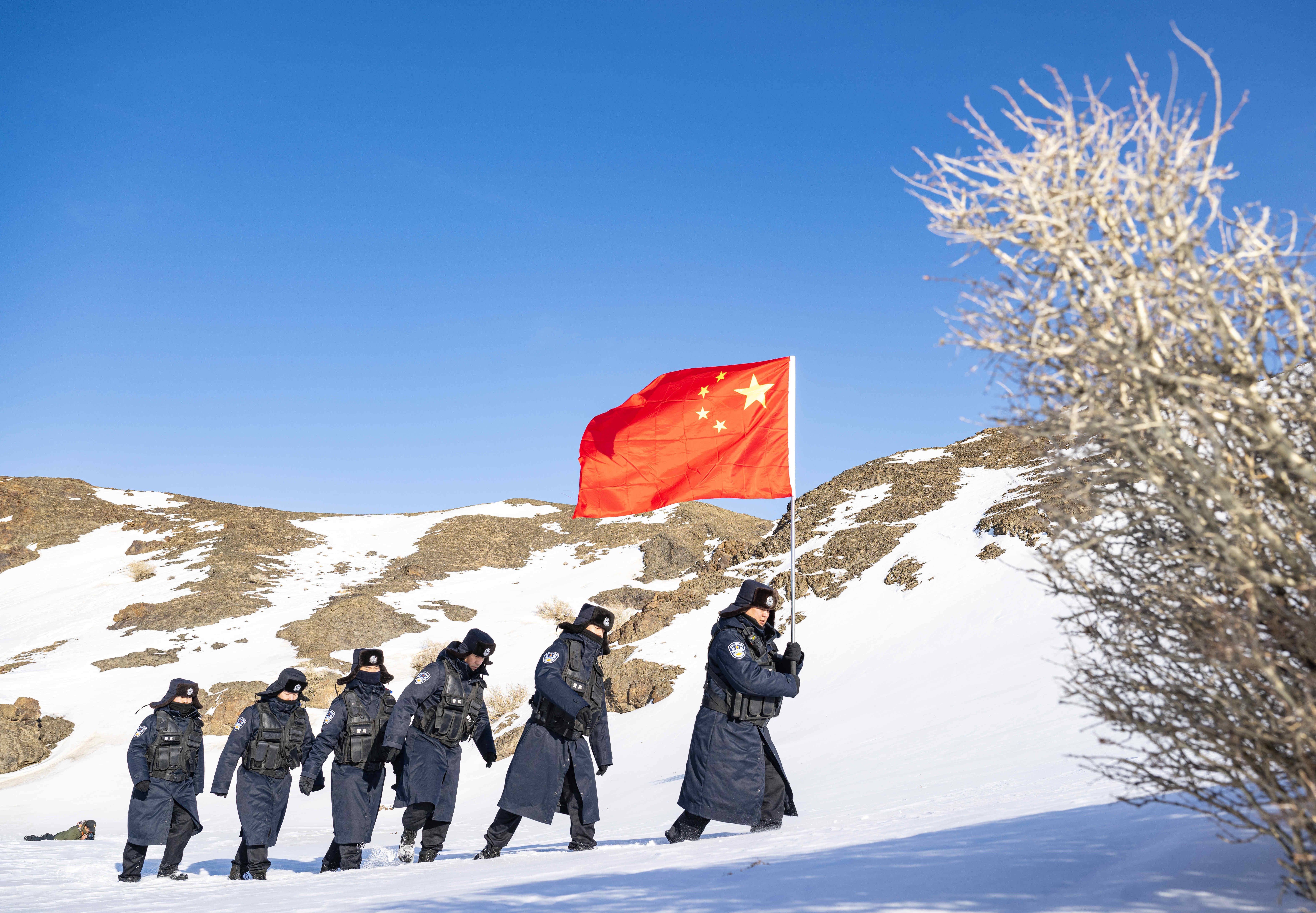 1月28日至29日,新疆出入境边防检查总站昌吉边境管理支队大黄水泉边境派出所组织民警深入边境一线辖区采取车巡、步巡、无人机巡的方式顶风冒雪边境踏查,满面冰霜描红界碑,向国旗敬礼,坚守祖国边境一线,用特殊的方式,迎新春、过大年。