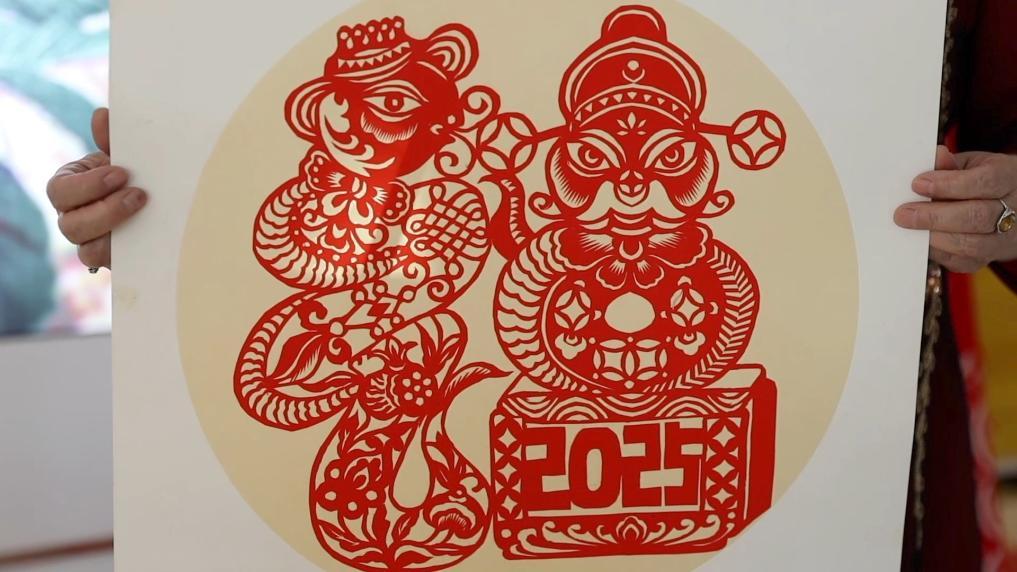 左手持红纸,右手握剪刀,65岁的伏兆娥时而微笑、时而凝神,沉浸在创作之中。“送福蛇”,许仙、白娘子,“蛇盘兔”……伏兆娥制作了多幅造型各异的剪纸作品庆祝新春佳节的到来。