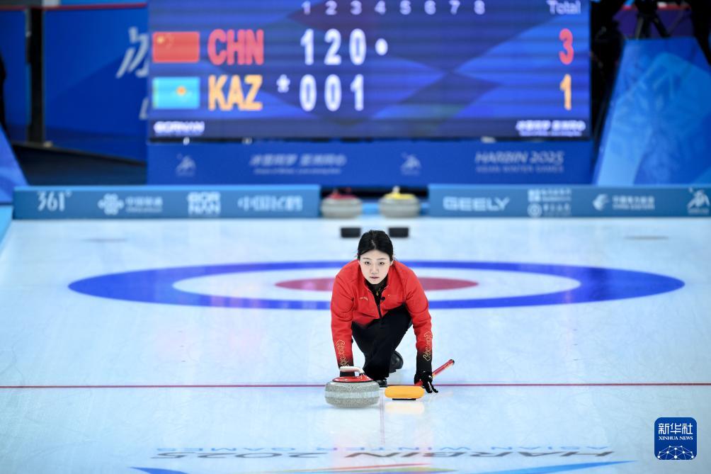 当日,在哈尔滨举行的第九届亚冬会冰壶混双循环赛B组第1轮比赛中,中国队11比5战胜哈萨克斯坦队。