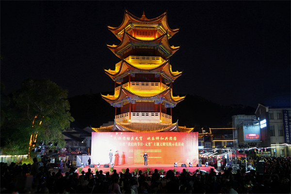 在普洱古镇,丰富多样的文明实践活动同步开展,书法爱好者以笔为媒,饱蘸深情,精心书写并送上承载着“祝福”“平安”“健康”的墨宝。当社会主义核心价值观、传统文化以及移风易俗理念巧妙融入谜面时,群众穿梭于灯谜中,答得不亦乐乎。此外,灯笼制作、糖画制作、烤茶、拓印、染红蛋、舂粑粑等体验环节吸引了不少群众驻足。现场,各族群众身着盛装,手拉手围着篝火跳舞,欢声笑语贺佳节,描绘出中华民族一家亲的美好画面,营造欢乐祥和的节日氛围。