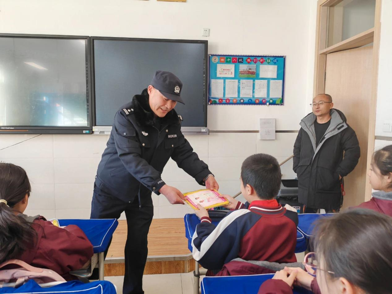 图为白殿华同志在线路周边学校开展爱路护路宣传。(太原铁路公安局大同公安处大同站派出所供图)