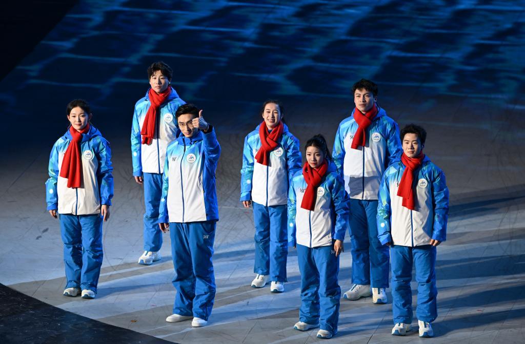 2月14日,各体育代表团在闭幕式上入场。新华社记者 张涛 摄