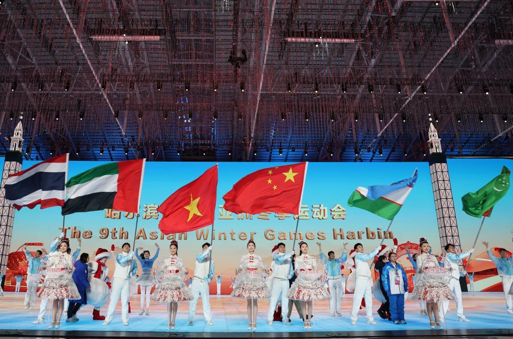 新华社哈尔滨2月14日电 题:礼赞冰雪 拥抱春天——哈尔滨第九届亚洲冬季运动会闭幕式侧记