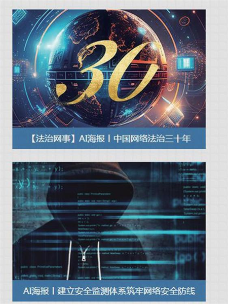 如《中国网络法治三十年》一经发布,光明网便推出了数个长图解,对中国网络法治三十年进行全景式概览。通过长图形式,细数网络法治三十年的三个阶段、实践成就、与百姓息息相关的热词等。同时,充分利用前沿人工智能技术,推出系列AI海报和AI绘报告,展示中国网络法治三十年的成就和闪光数据。