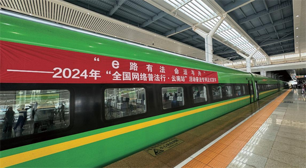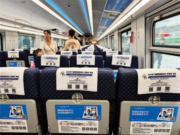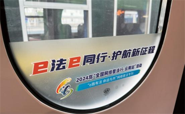 一是打造主题车厢。聚焦“一带一路”网络空间安全和沿线群众在网络法治领域的热点问题,根据复兴号CR200J的车型特点,设置“中国网络法治三十年”“网络安全”“数据安全”“未成年人网络保护”“数据出境之旅”“反网暴净网行动”“个人信息守护”以及“网络空间命运共同体”8节主题车厢,让车厢内部成为网络普法移动走廊,突出展示新时代中国网络法治建设理念、实践成效及交流成果。二是丰富法治内容。充分利用车厢内镜框海报、玻璃贴、小桌板贴、行李架彩贴、头枕片、LED显示屏等丰富多彩的载体,以口诀、顺口溜、图片、漫画、金句等形式展示网络法律知识,打造轻松愉快的移动式学法场景,让乘客们在享受舒适旅途的同时,也能轻松学习到实用的法律知识,共推出普法图片50张,漫画20幅,金句48条。三是互动扫码学法。在每个座位的头枕片上印制“法润彩云南你我共参与”网络法治竞赛二维码,方便群众可随时扫码开展趣味学法,参与便捷、实用性强,为移动化碎片式学法提供新途径,吸引246.5万人次参与答题,访问量累计超645.8万次。