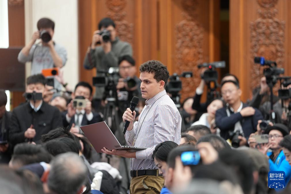 3月4日,十四届全国人大三次会议在北京人民大会堂举行新闻发布会。大会发言人娄勤俭就大会议程和人大工作相关问题回答中外记者提问。这是记者在发布会上提问。