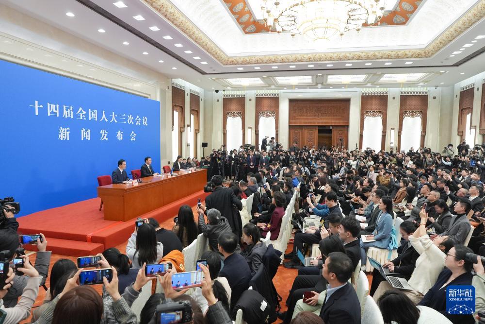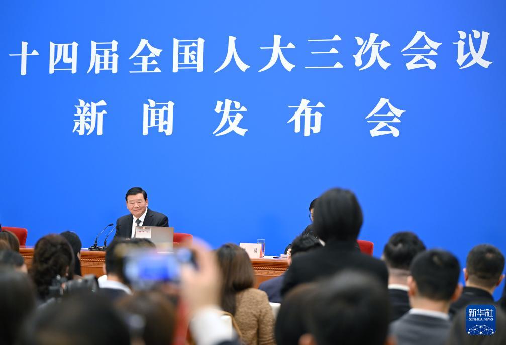 3月4日,十四届全国人大三次会议在北京人民大会堂举行新闻发布会。大会发言人娄勤俭就大会议程和人大工作相关问题回答中外记者提问。