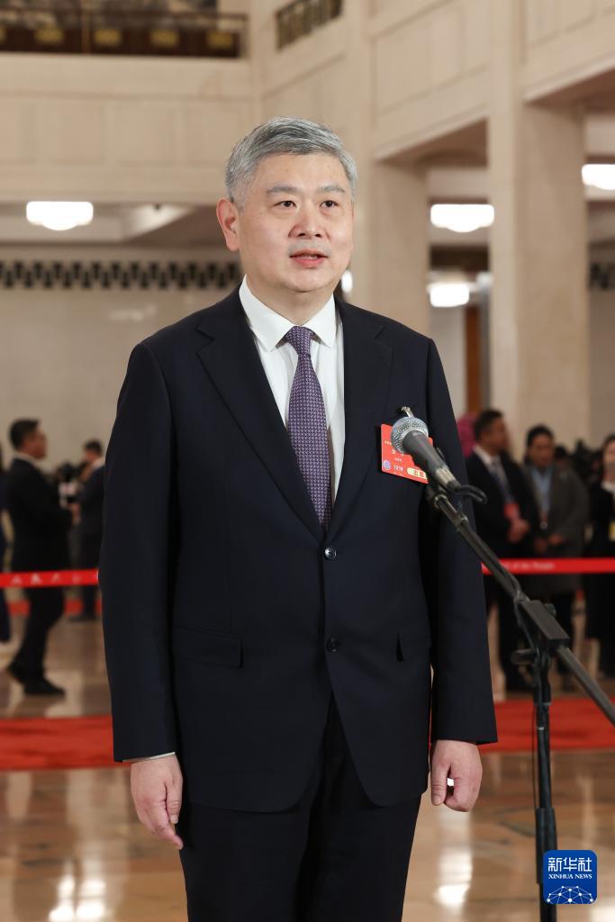 3月4日,全国政协十四届三次会议首场“委员通道”集体采访活动在北京人民大会堂举行。这是全国政协委员金李接受媒体采访。