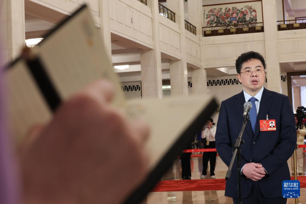 3月4日,全国政协十四届三次会议首场“委员通道”集体采访活动在北京人民大会堂举行。这是全国政协委员赵宏接受媒体采访。