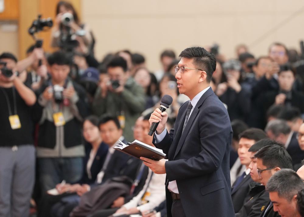 3月7日,十四届全国人大三次会议在北京梅地亚中心新闻发布厅举行记者会。中共中央政治局委员、外交部长王毅就“中国外交政策和对外关系”相关问题回答中外记者提问。这是新华社记者在提问。