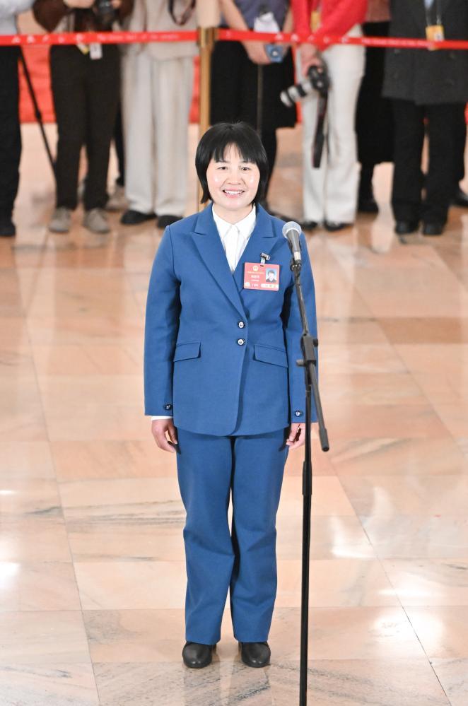 3月11日,第十四届全国人民代表大会第三次会议第三场“代表通道”集中采访活动在北京人民大会堂举行。这是全国人大代表谭新萍接受媒体采访。