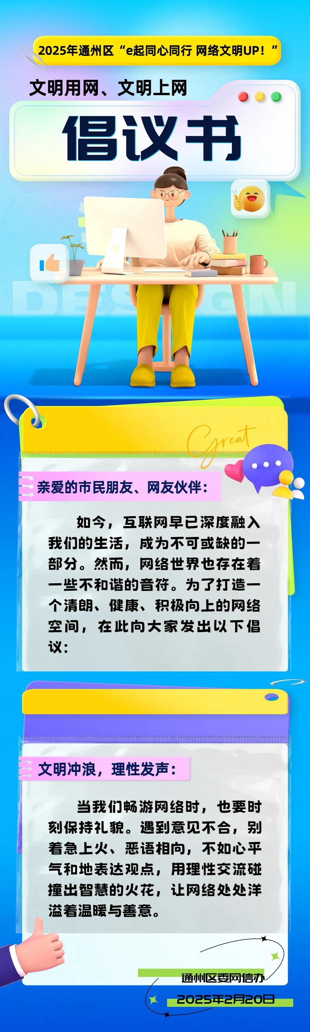2025年通州区“e起同心同行 网络文明UP!”文明用网、文明上网倡议书