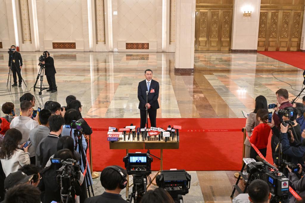 3月11日,第十四届全国人民代表大会第三次会议第三场“部长通道”集中采访活动在北京人民大会堂举行。这是自然资源部部长关志鸥接受媒体采访。