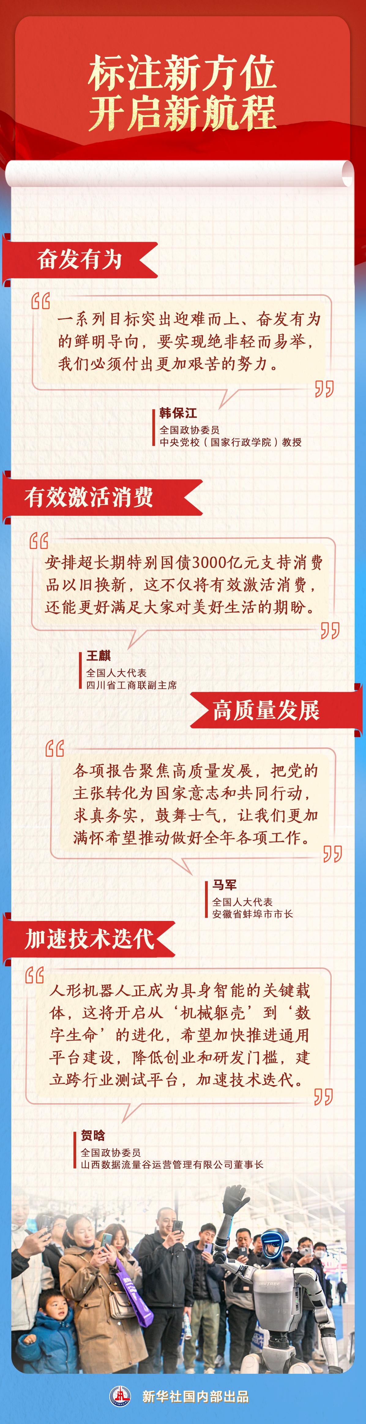 代表委员们表示,要锚定新的奋斗目标,紧抓高质量发展这个首要任务,在新领域新赛道跑出加速度、取得新成绩。