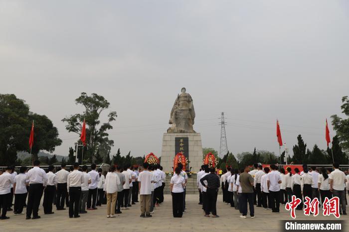“请全体肃立,奏唱国歌!”16时整,祭扫活动在雄壮的《中华人民共和国国歌》中拉开序幕。随后,全体人员向烈士默哀。