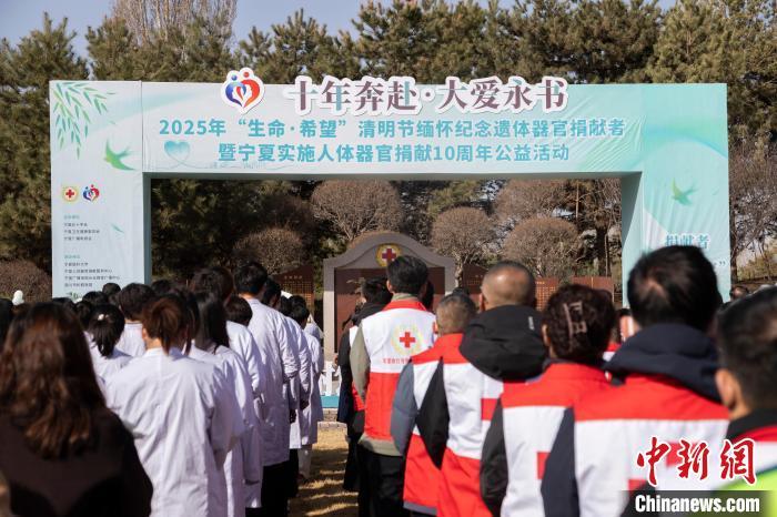 中新网银川3月28日电 (记者 杨迪)3月28日,2025年“生命·希望”清明节缅怀纪念遗体器官捐献者暨宁夏实施人体器官捐献10周年公益活动,在宁夏遗体和人体器官捐献缅怀纪念园(松鹤陵园)举行。