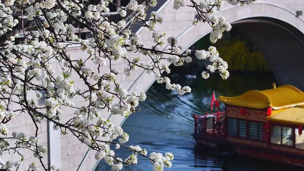 在山东省枣庄市台儿庄古城,砖瓦青苔间萌发新绿,飞檐斗拱下掩映花枝,不少游客身穿各式各样的汉服拍照打卡,十分惬意。“我和朋友一起春游踏青,在古城美景中感受着蓬勃的生命力。”来自山东省济宁市的游客马哲说。