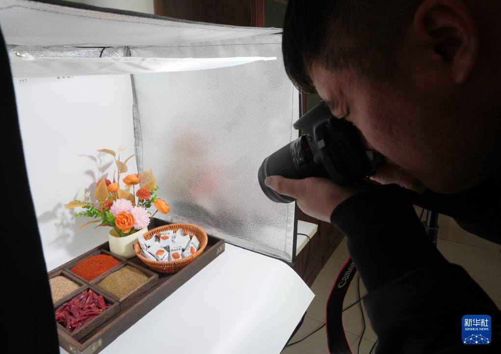 4月11日,工作人员在沈阳市阳阳食品有限公司拍摄产品宣传材料。