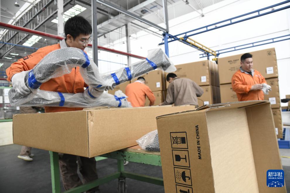4月22日,青岛英派斯健康科技股份有限公司员工在对出口产品进行抽检。