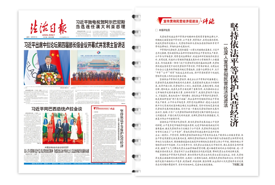 潮涌东方千帆竞,风起云涌万象新。站在新的历史方位,我们要以“直挂云帆济沧海”的实干精神贯彻法律要求,将平等保护转化为护航发展的具体实践,激励广大民营企业和民营企业家以更强信心、更优创新、更实担当,奋力书写民营经济持续、健康、高质量发展的新篇章,为推进中国式现代化作出新的更大贡献。