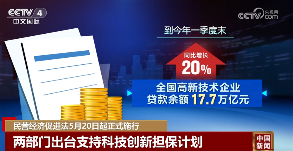 国家金融监督管理总局与财政部门联合出台了支持科技创新担保计划,为科技型、高新技术、专精特新等中小企业的贷款提供专项担保。到今年一季度末,全国高新技术企业贷款余额17.7万亿元,同比增长20%。