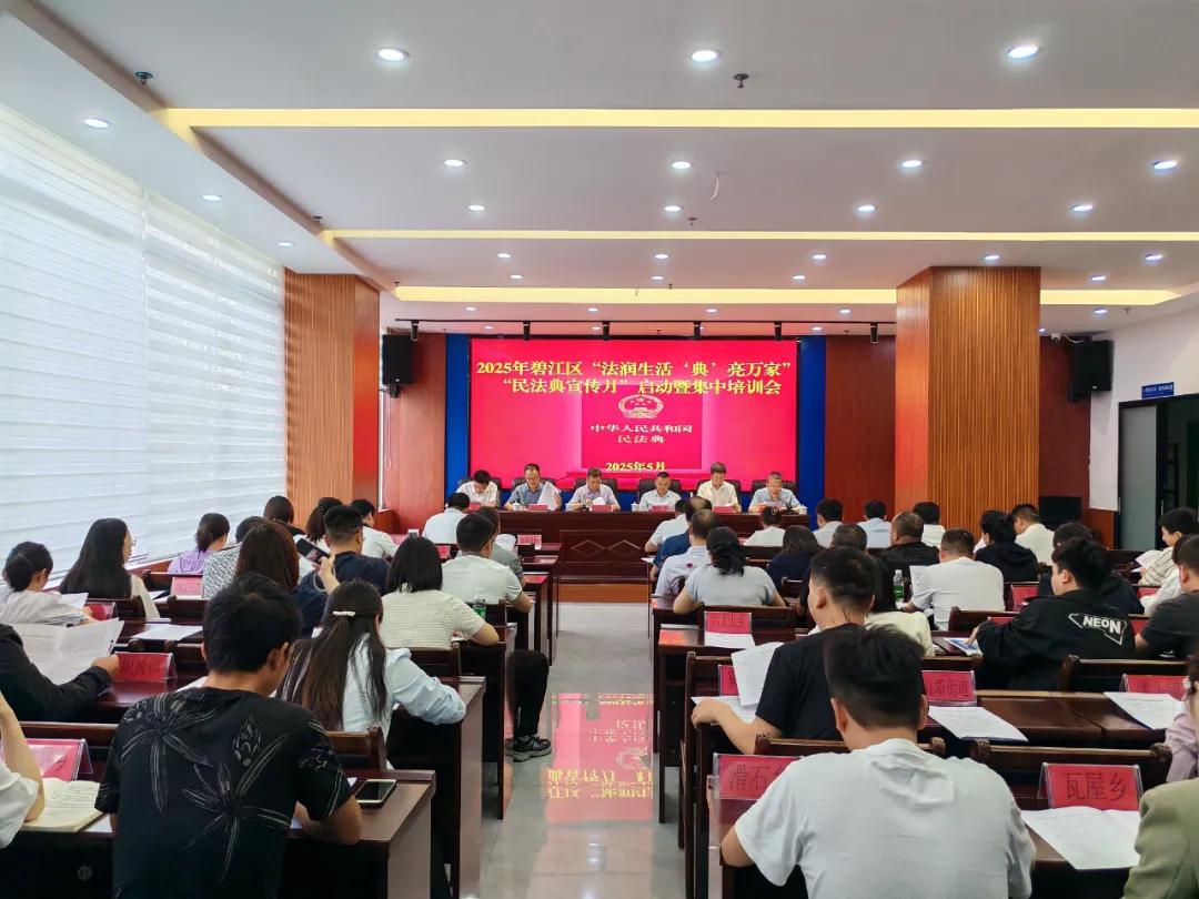 在第五个“民法典宣传月”来临之际,中共贵州省铜仁市碧江区委全面依法治区委员会办公室、区司法局、区法学会于近日组织召开以“法润生活·‘典’亮万家”为主题的民法典宣传月启动暨集中培训宣传会。