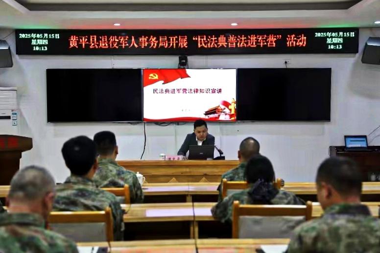 今年5月是全国第五个“民法典宣传月”,为进一步加强民法典普法宣传,增强驻黄部队官兵法治意识,5月15日,贵州省黔东南州黄平县退役军人事务局邀请黔成起智(黄平)律师事务所律师深入黄平县人武部,开展“送法进军营”活动。