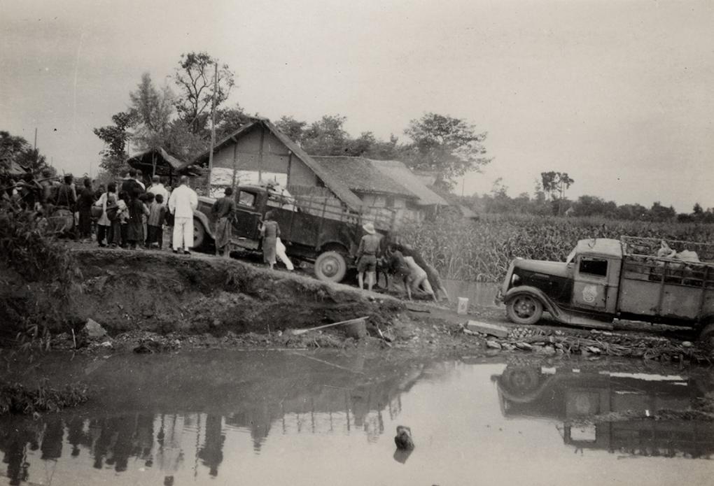 1937年,南迁文物在川陕公路运输的艰苦状况(资料照片)。新华社发